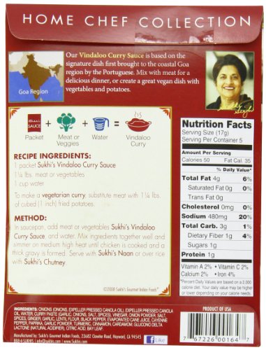 Sukhi's Gluten-Free Vindaloo Curry Sauce, 3-Ounce Packets (Pack of 6)