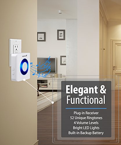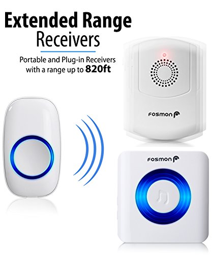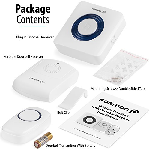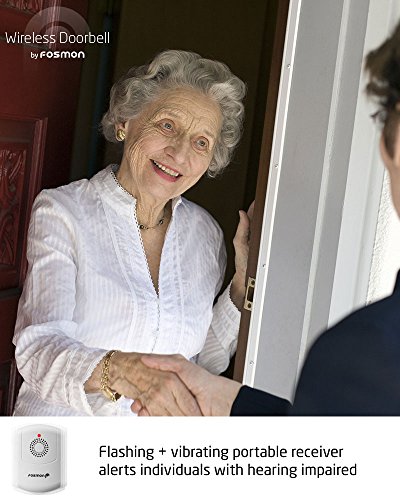 Fosmon 51006HOM Wireless Doorbell with Portable Flashing Vibrating Receiver for Noisy Environment, Warehouse, Factory, Offices, Senior - 1 Remote, 1 Plugin, 1 Portable Vibrating Receiver w/Belt Clip