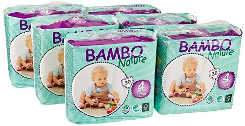 BAMBO NATURE PREMIUM BABY DIAPERS, MAXI, SIZE 4, 30 COUNT (PACK OF 6)