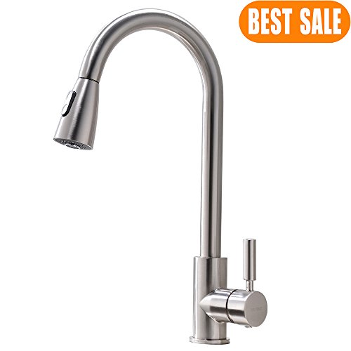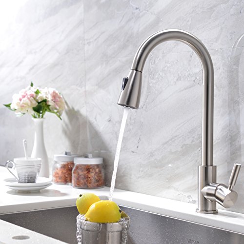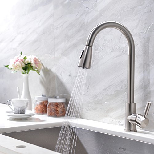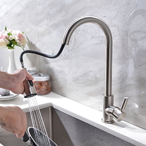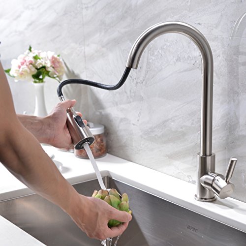 VAPSINT Modern Stainless Steel Single Handle Single Hole Brushed Nickel Pull Out Spray Kitchen Faucet,Pull Down Kitchen Sink Faucet