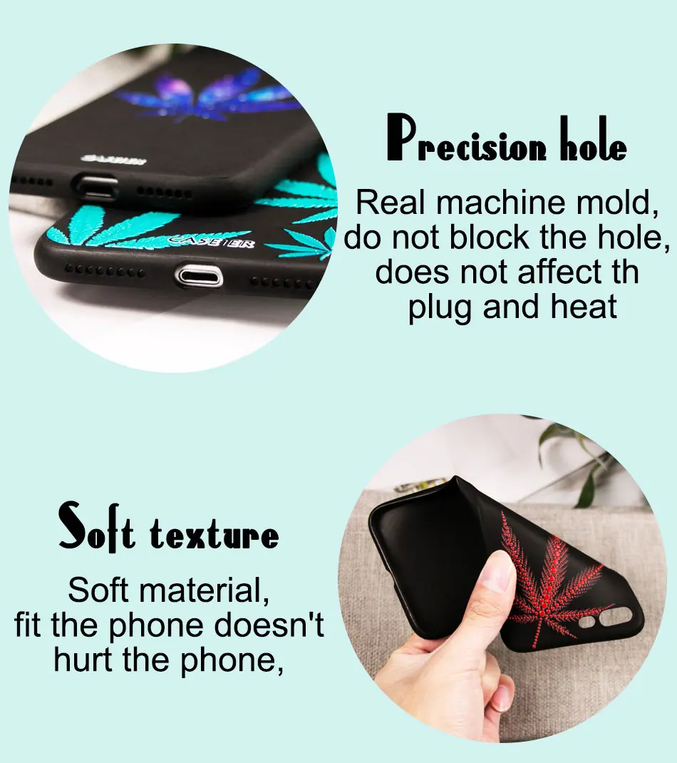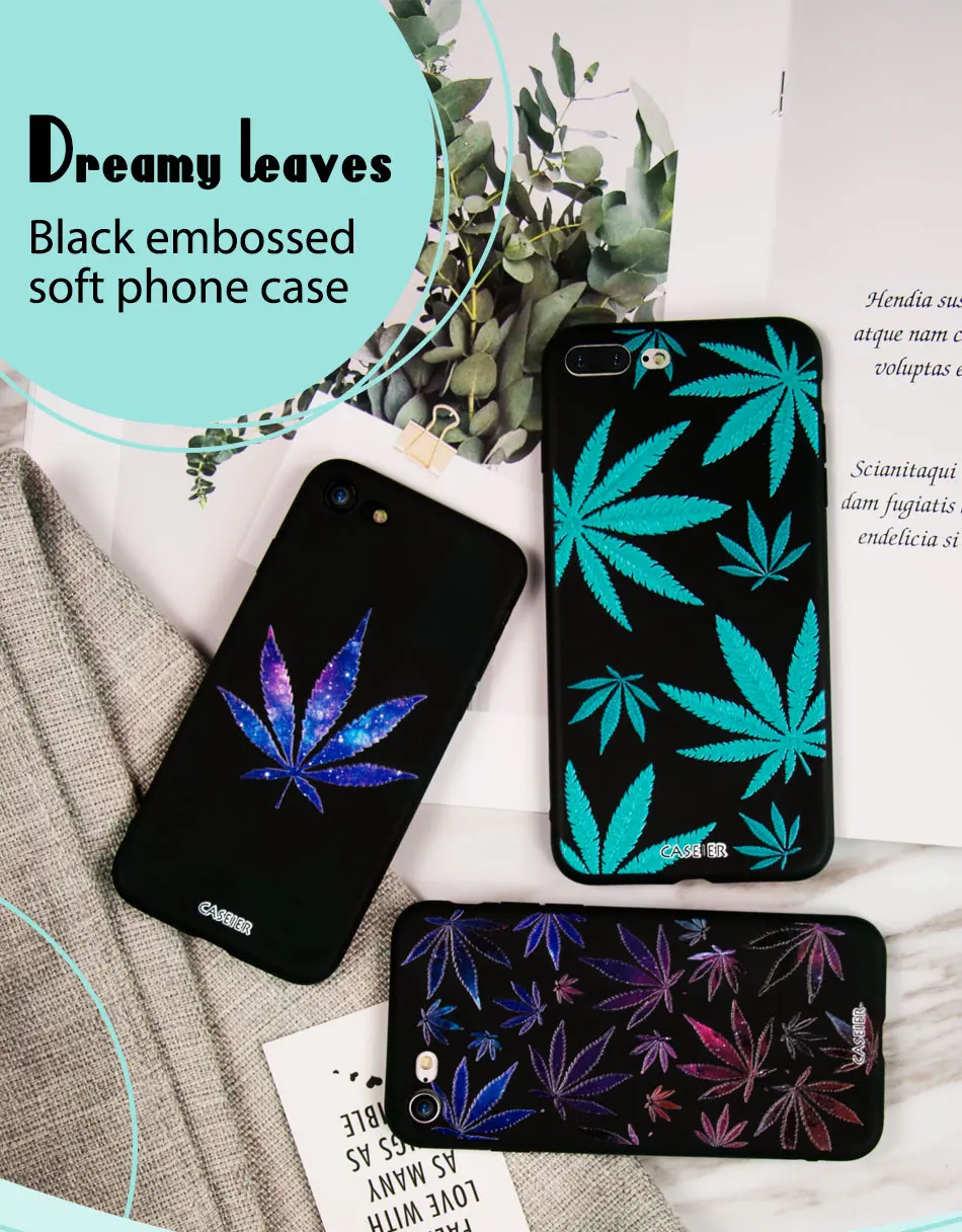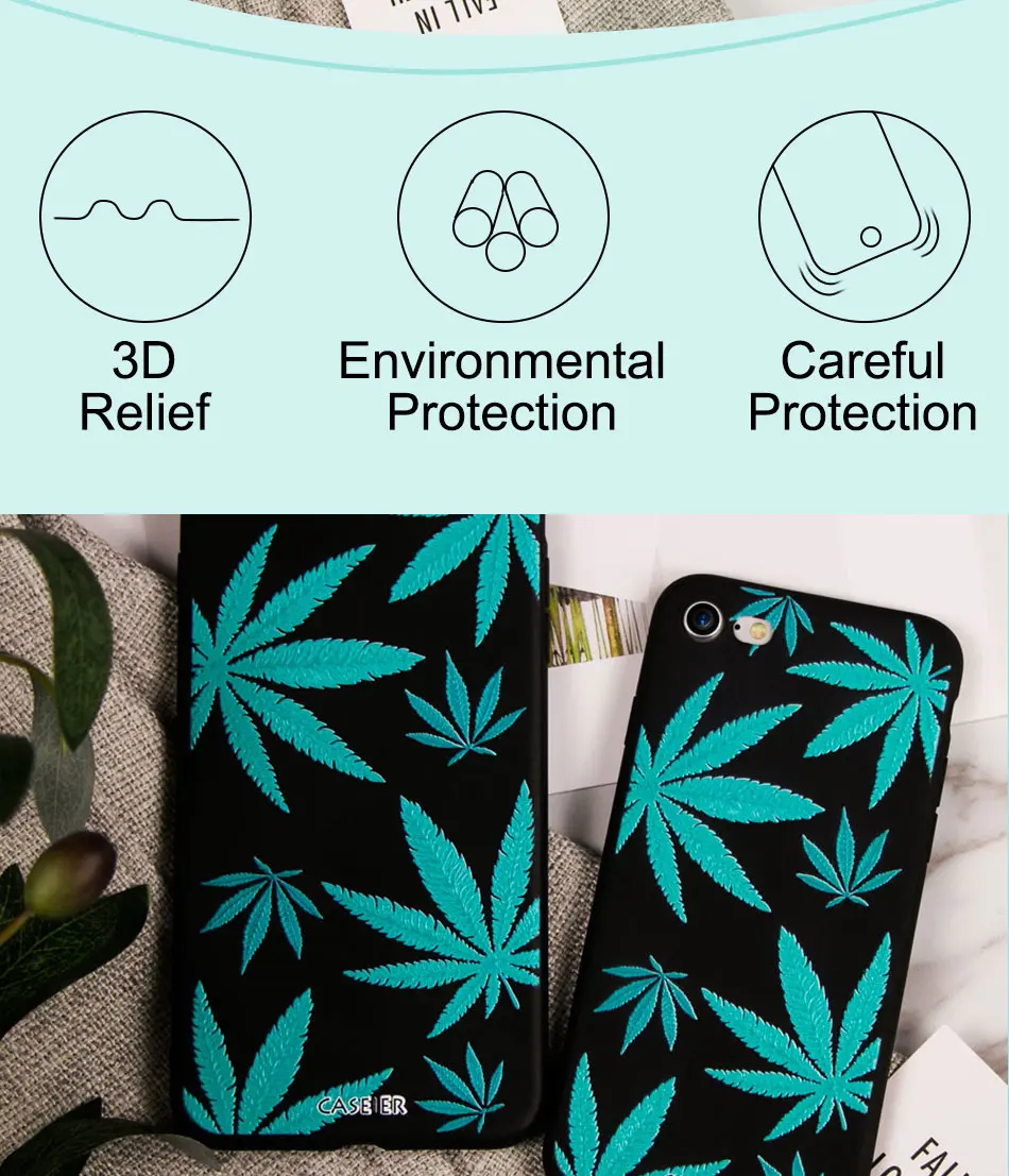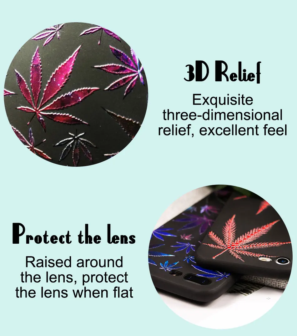 Features:3D Emboss Leaf Patterned Phone Cases Capa Funda Cover Capinha