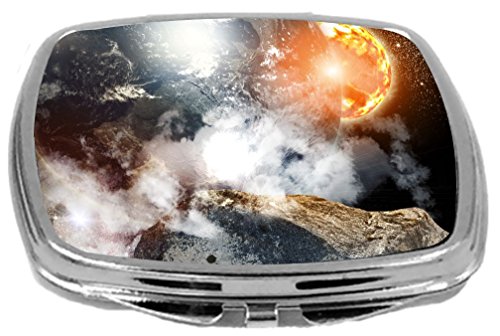 Rikki Knight Planet Space Blue Earth Galaxy Moon Nebula Design Compact Mirror, 17 Ounce