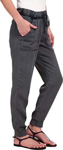 Lightweight pant flaunts a distressing for a worn-in look. Drawstring at elastic waist. Hand pockets at front. Single welt pocket at rear. Tapered fit throughout leg. Ribbed cuffs at ankles. 100% Lyocell®; Contrast: 95% cotton, 5% spandex. Machine wash cold, tumble dry low. Made in the U.S.A. and Imported.