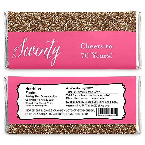 Chic 70th Birthday - Pink and Gold - Birthday Party Favors Candy Bar Wrappers - Set of 24