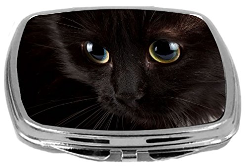 Rikki Knight Compact Mirror, Black Cat Glassy Blue Eyes