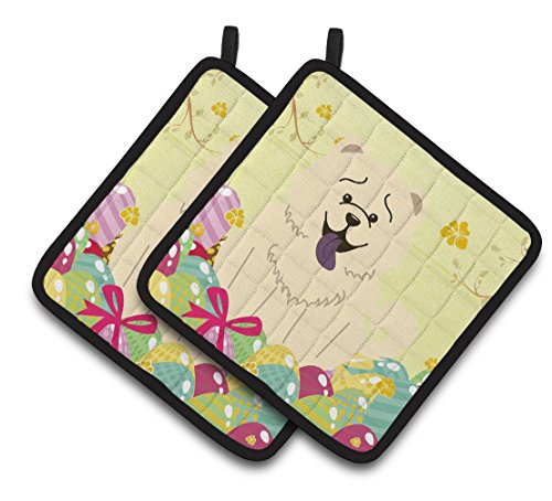 Caroline's Treasures Easter Eggs Chow White Pair of Pot Holders, 7.5HX7.5W, Multicolor