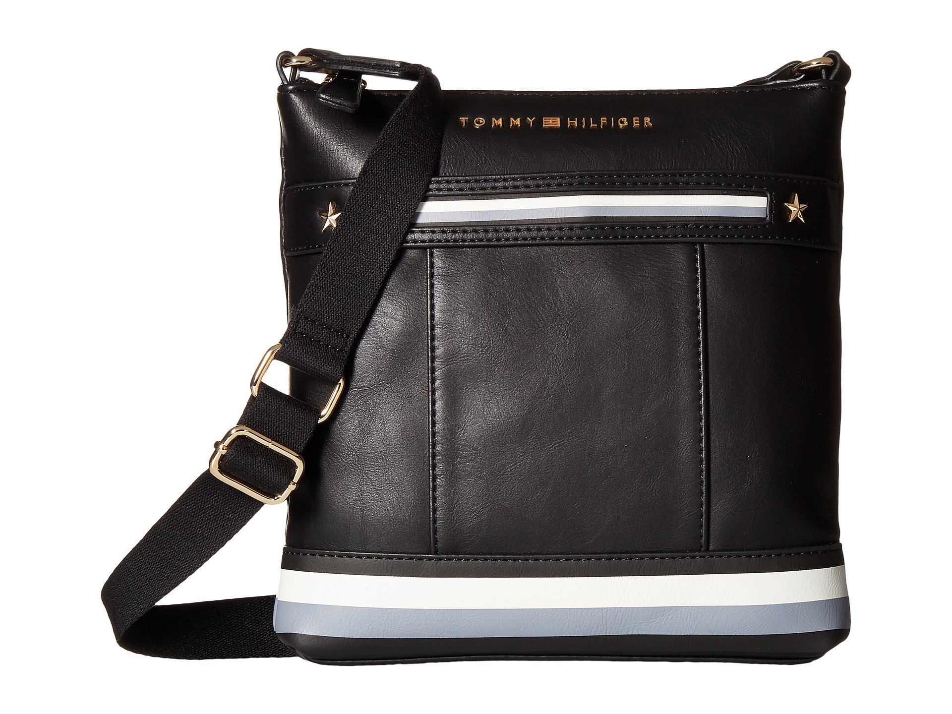 | Product Information SKU: #8950784You'll be seeing stars with the chic style of the Tommy Hilfiger? Larissa North/South Crossbody.Made of synthetic leather. Zipper closure. Adjustable crossbody strap. Exterior features two slip pockets, contrast trim, and hardware detail. Flat base. Lined interior features one zip pocket and an additional slip pocket. Imported. This product may have a manufacturer's warranty. Please visit the manufacturer's website or contact us at warranty@support.zappos.com for full manufacturer warranty details.Measurements: Bottom Width: 8 in Depth: 3?4 in Height: 8 1?2 in Strap Length: 60 in Strap Drop: 28 in Weight: 10.8 oz |