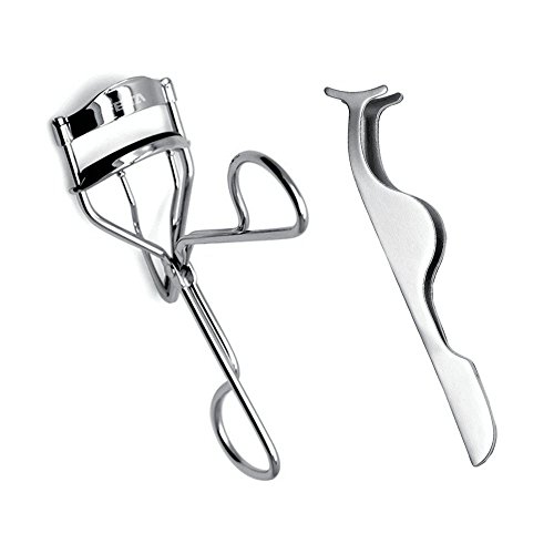 FEITA 2Pcs Eyelash Curler Professional Lash Curlers and Mini Slant Tweezers Stainless Auxiliary Eyelash Curl Beauty Tool