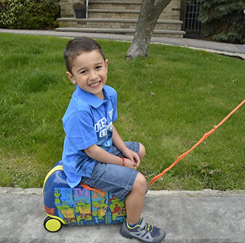 -. Feature : Nickelodeon TMNT Ninja Turtles Kids Carry On Luggage 20" Children Seat-On Ride-On Suitcase / Multi-Directional Front Wheels For Easy Mobility. Hard-wearing and light weight plastic. Large Fixed Rear Wheels For Stability. Double Carry-Handles / Ride-on, tow-along, carry-on suitcase, ideal for vacations, sleep overs, weekends away. Your child can seat on the suitcase. Maximum weight recommended is 88 pounds. Front Hand Holders For Rider. Removable, Adjustable Tether Strap. Roomy Interior With Storage Compartments. / Nickelodeon TMNT Ninja Turtles Seat-On Ride-On Suitcase will make your trip entertained. Approved Carry-On Size 16" x 12" x 10" / Bonus Activity Coloring Book for Travel Fun