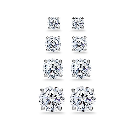 4-Pair Sterling Silver Stud Earrings Set Made with Swarovski Zirconia, 4mm, 5mm, 6.5mm, 8mm