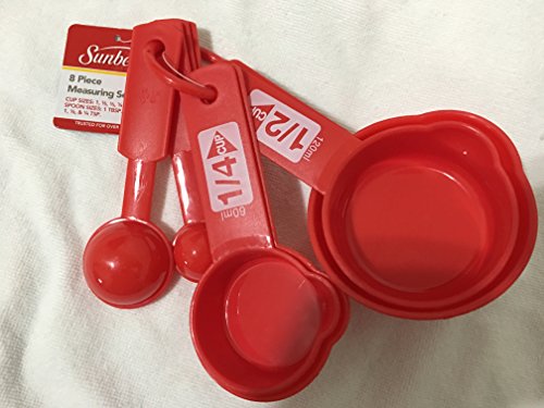 Sunbeam Measuring Cups and Spoons, 8 Piece Set, Red