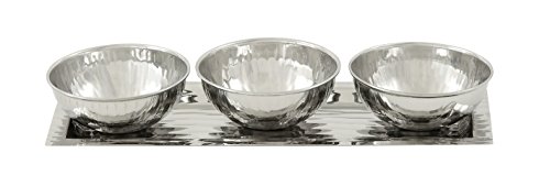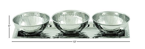 Deco 79 90839 Stainless Steel 3 Bowl Tray, 13" x 4"