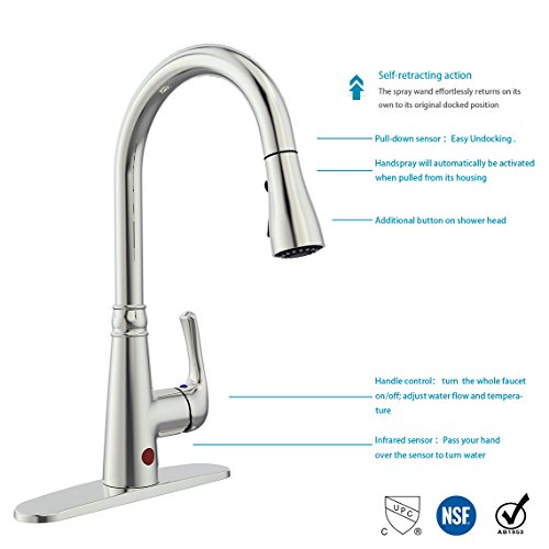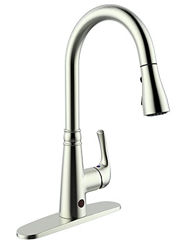 BOHARERS Kitchen Faucets Sensor Faucet Brushed Nickle Touch Motion Hands with Deck Plate, Dual Spray Head Offers 2 Styles of Water