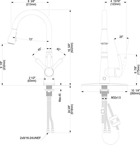 EASY INSTALLATION--Hot and cold flexible hoses included. 1 or 3 holes installation(optional escutcheon included).