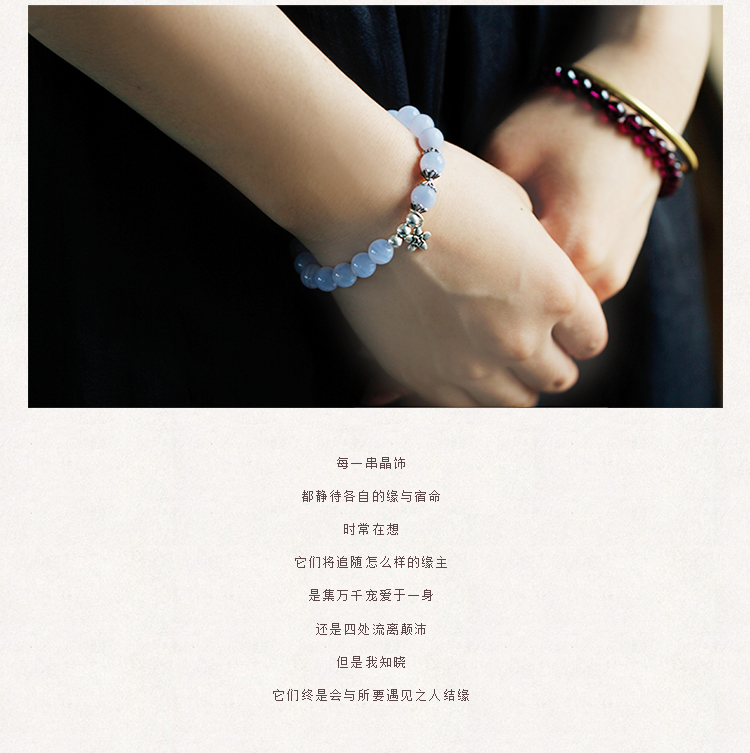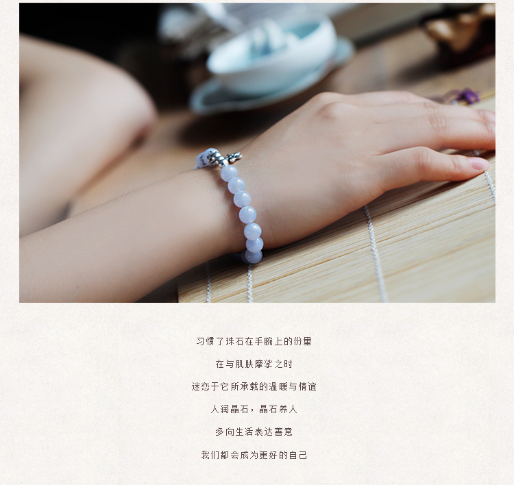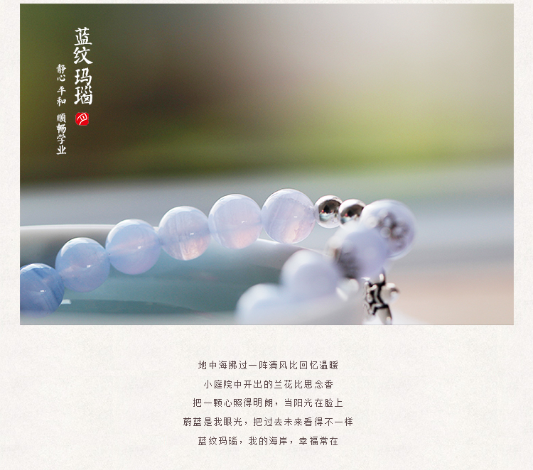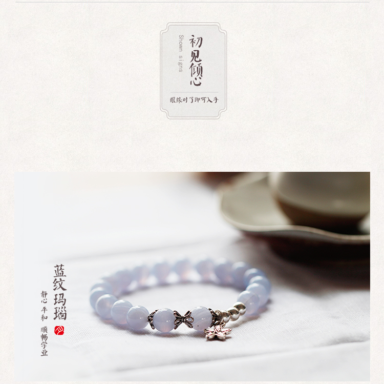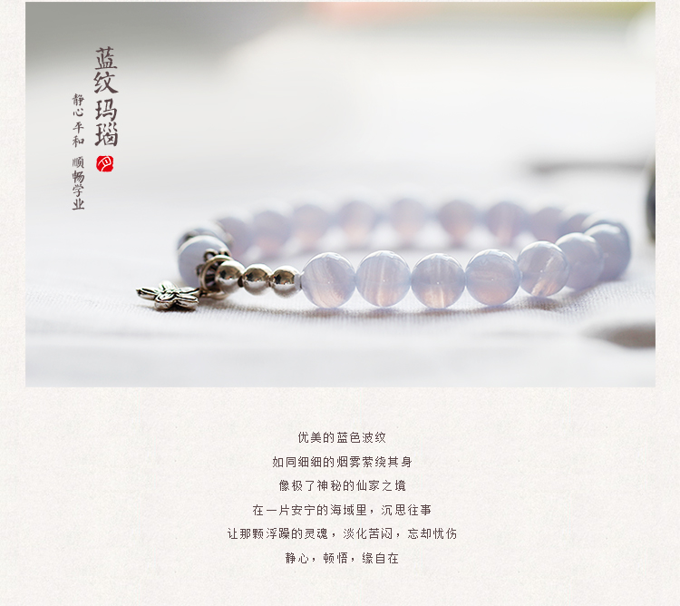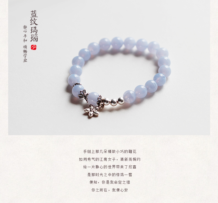 【静心】开运原创天然蓝纹玛瑙蓝玉髓S925银水晶手链女士