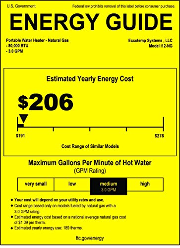 Eccotemp i12-NG Indoor tankless heater, 1/2 inch NPT water fittings