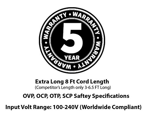 -. Feature : (8 Foot Long) Adapter Rating: World Wide 100V ~ 240V 50/60Hz / High Quality PSU/Transformer / All products are tested to exceed/meet standard specification / OVP, OCP, SCP Protection (OVP: Over Voltage output Protection. OCP: Over Current output Protection. SCP: Short Circuit output Protection) / 5 YEAR FREE WARRANTY / 3RD-PARTY ADAPTER NON PARTS
