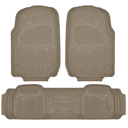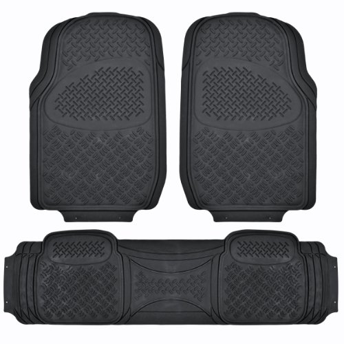-. Feature : Trimmable for Semi Custom Fit / Durable and Flexible (withstands extreme temperatures) / Set of 4 pc for 3 Rows (Front and Rear Placement) / All Weather Maximum Protection against: snow, rain, mud, gravel, dirt. Extra high ridges (Traps mud, snow, liquid easily) / Rubberized Nib Backing