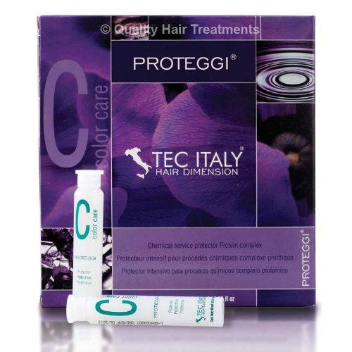 Tec Italy Proteggi 12 Ampoules 10 mL / 0.33 fl. oz. Proteggi is a revolutionary hair shaft protector, developed to guarantee excellent results in any chemical service. Proteggi shields hair against the aggresivity of chemical products and stimulates their effectiveness and durability. While perming, Proteggi promotes a smooth and even cistine bonds breakage, and a strong re-bonding to the curl size desired. While tinting Proteggi stimulates deep penetration of cosmetic hair-color, increasing its life and brightness. its advanced and delicate formula, developed in Italy, joins TRICONE (Protein Complex, m.w. 90-150-3000) and TRICOERBA (Herbal Complex), to condition and untangle, giving shine and volume. its concentrated sunscreen protects hair against UV rays. Intensive protein complex treatment to protect hair fibers and stimulate deep color penetration during chemical processes. Proteggi conditions, untangles and gives brilliant shine. It also protects against damage caused by UV rays. It desensitizes the scalp to irritation caused by the hair coloring process