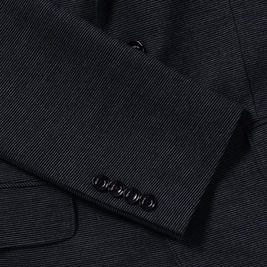 - 스트라이프 조직의 텍스쳐 디자인을 적용한 남성 자켓.