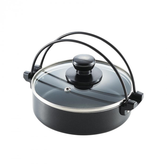 | 素材・材質 | 【本体】 表面加工/内面:ふっ素樹脂塗膜加工、外面:焼付け塗装 本体:アルミニウム合金 はり底(厚さ2.4mm):ステンレス鋼 つる:鉄(エポキシ樹脂塗装) 【蓋】 強化ガラス(全面物理強化) 蓋の縁:ステンレス鋼 蓋つまみ・座板:フェノール樹脂 |