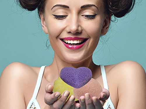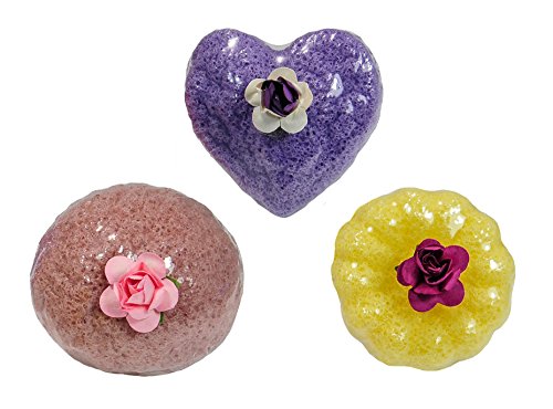 Premium Quality Set of 3 Konjac Sponges: 1 Lavender Heart, 1 Lemon Flower & 1 Tomato Half-Ball. 100% Pure & Natural – Adorable Polka-Dot Gift...