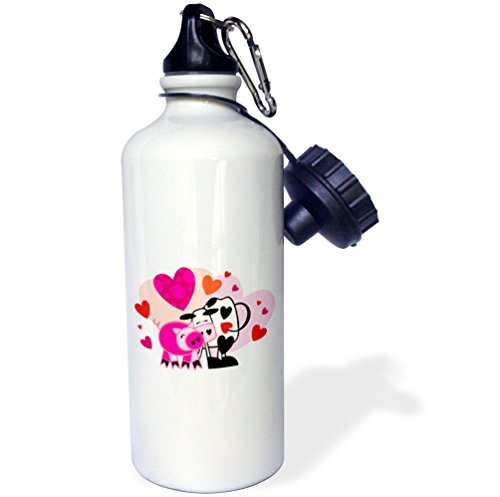 3dRose wb_102445_1 "Cute Cow and Pig Valentine Design" Sports Water Bottle, 21 oz, White