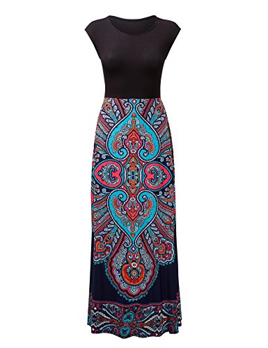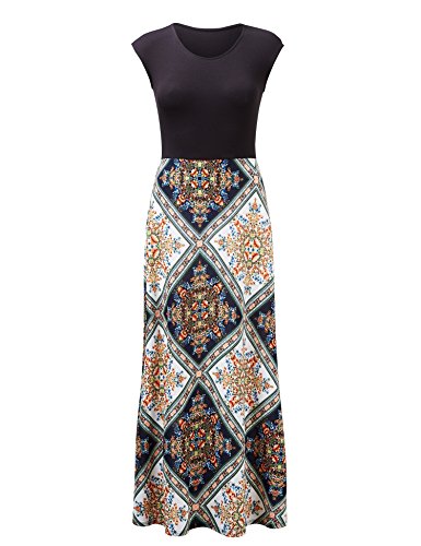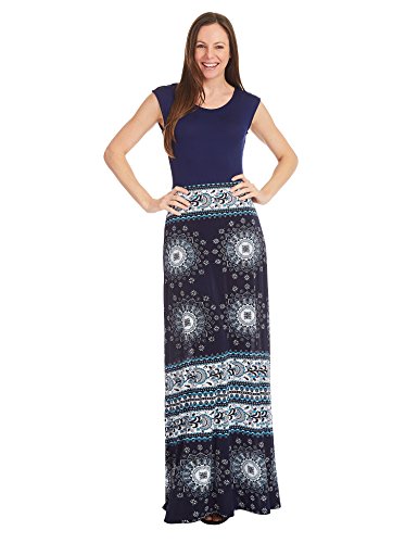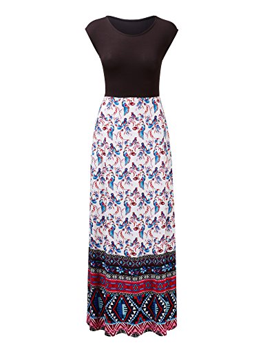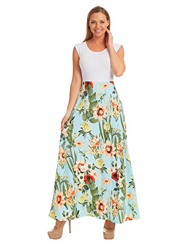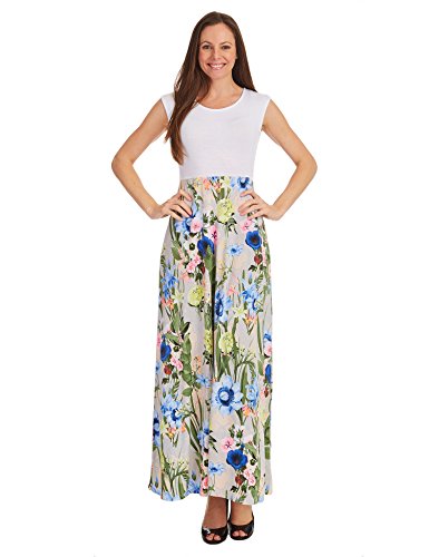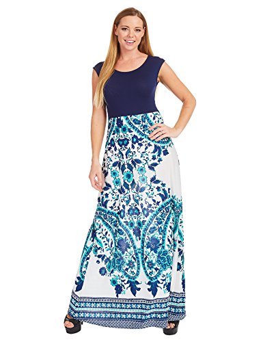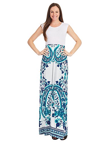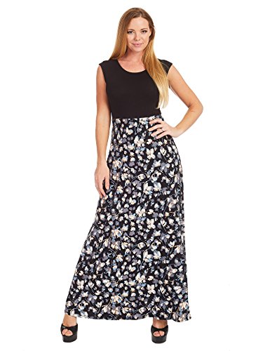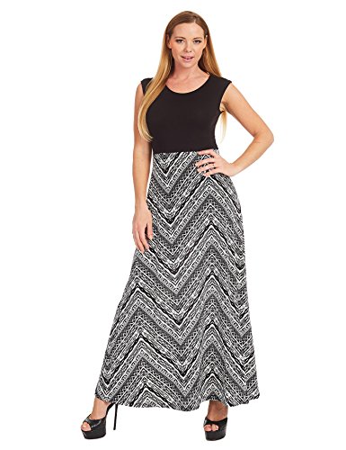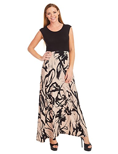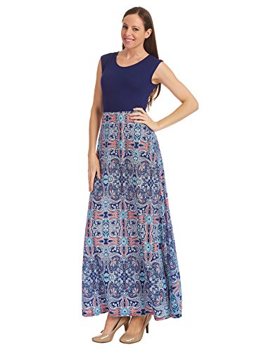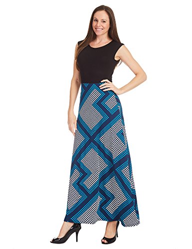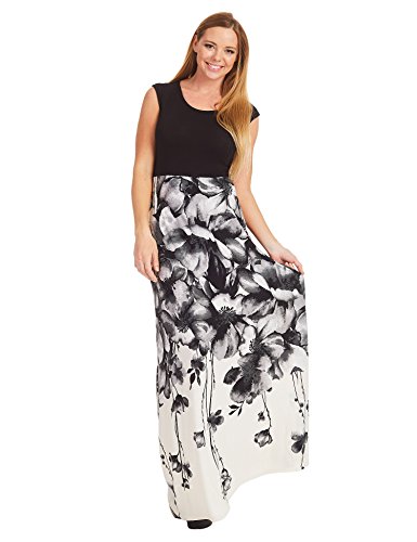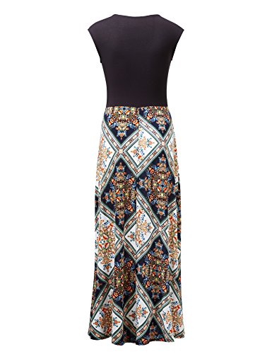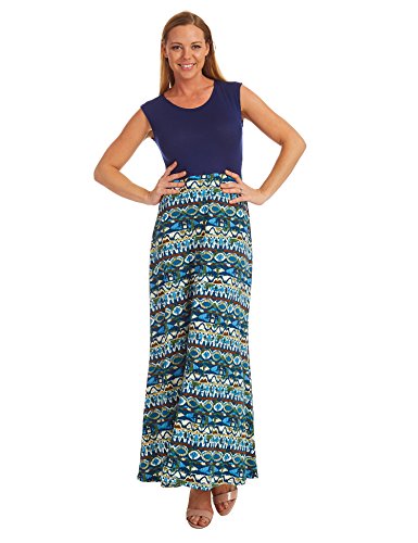 Womens Print Contrast Sleeveless Empire Line Maxi Dress