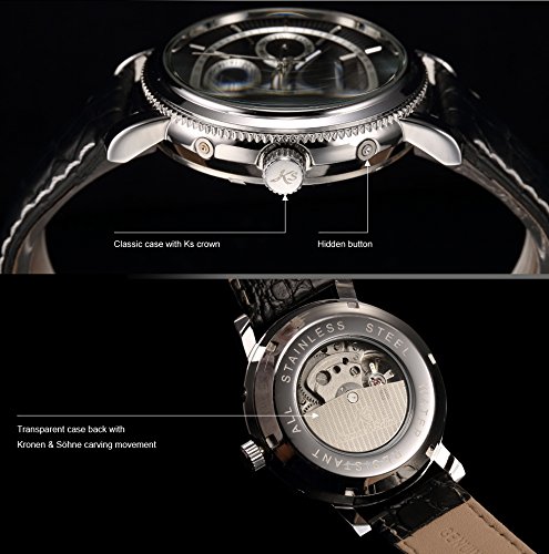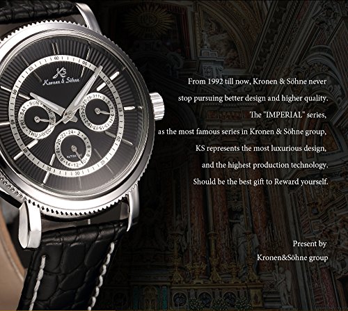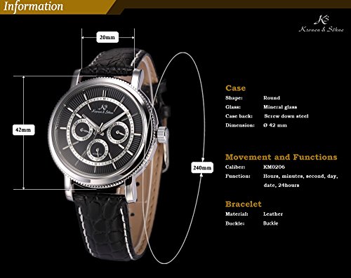 상품명: KS 맨즈 자동적 기계 식날짜 블랙 레더 밴드 손목시계KS247