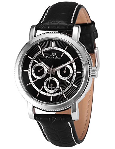 Ks KS 맨즈 자동적 기계 식날짜 블랙 레더 밴드 손목시계KS247