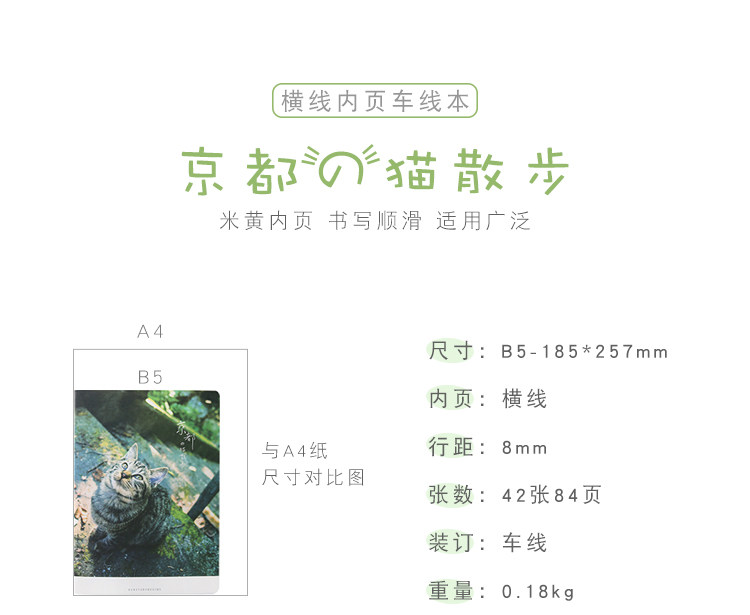 京都猫散步车线本 B5软面抄横线内页课堂笔记摘录本错题本子