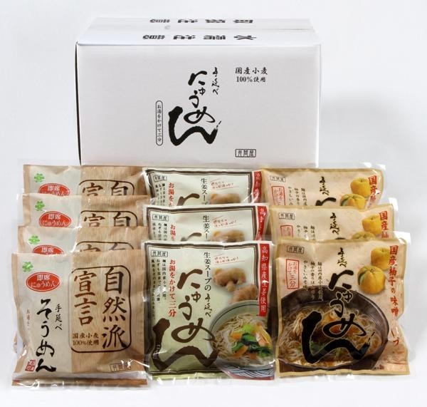 | セット内容 | 和風しょうゆだし:90g(麺:60g、めんつゆ:30g、ねぎ、七味)×4 生姜スープ:71g(めん:60g、生姜スープの素:11g、ねぎ)×3 柚子の味噌スープ:73.1g(めん:60g、柚子入り味噌スープの素:13.1g)× 3 |