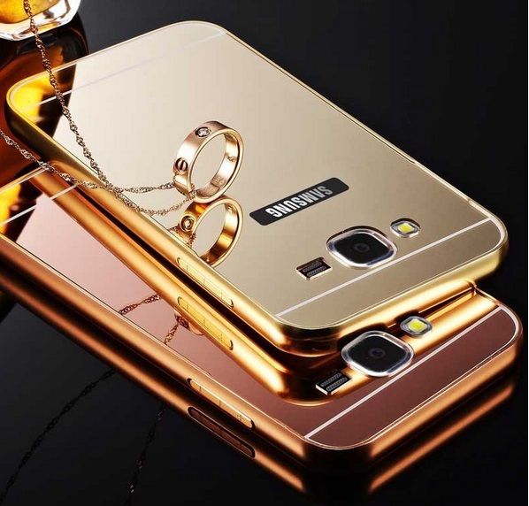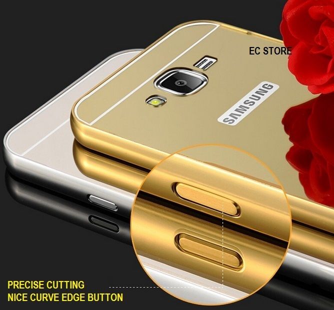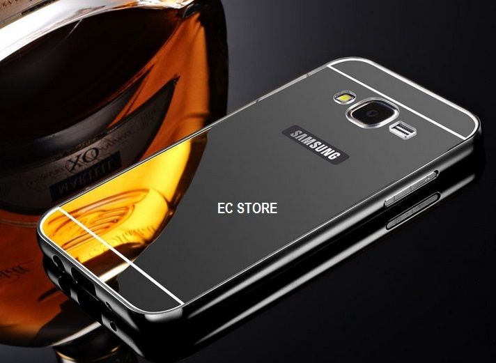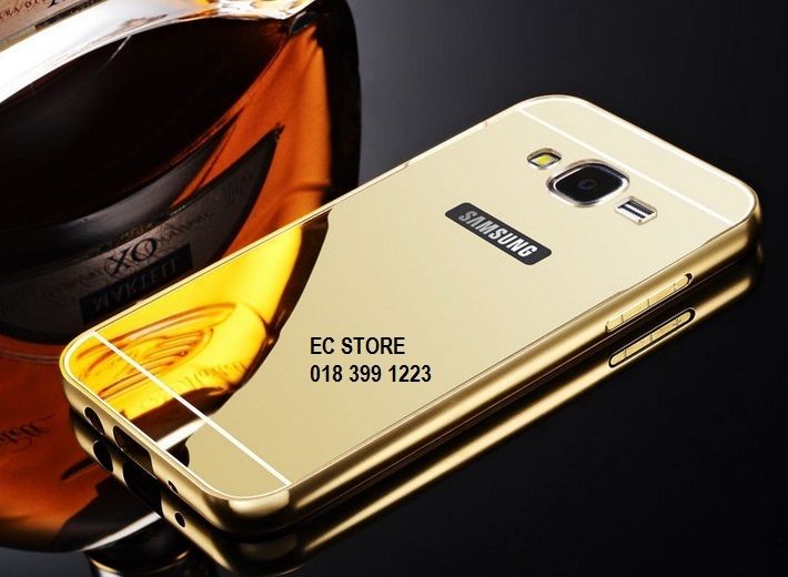 Samsung A8 A7 Ultra Thin Aluminium Metal Bumper Mirror Case Cover (GOLD/ BLACK )