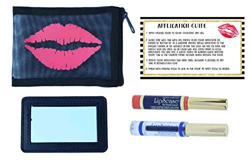 Lipsense Starter Kit Bundle: 1 She’s Apples Color, 1 Glossy Gloss, 1 Red Lips Black Mesh LipSense Pouch Carry Case, 1 Mirror, and 1 Application guide
