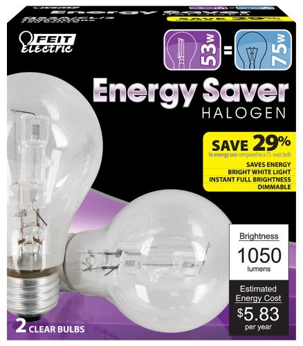 Feit Q53A/CL/2 53-watt ES Halogen A19 Clear 75-watt Equivalent, 2-Pack