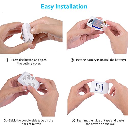 PREMIUM WIRELESS DOORBELL: Wireless range is up to 1000 feet (300m) in the open air, over 164ft even with obstacle of 4 doors, ensuring that you will never miss a visitor again! Remote push button is rated IP44 weatherproof and acceptable for outdoor use.