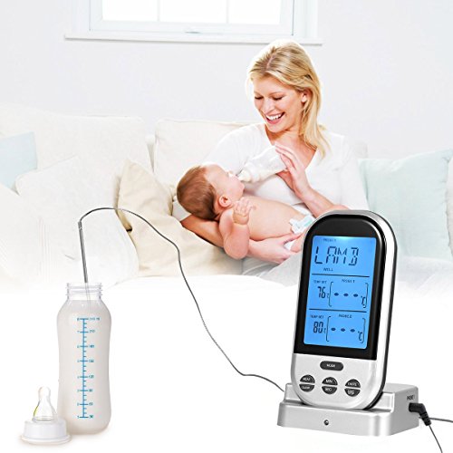 230 FT Range Remote Wireless Meat Thermometer - Alarm beeps and flashes when the meat reaches its target temperature, Really handy when you need to grill but want to sit on the couch, watch game or whatever you want