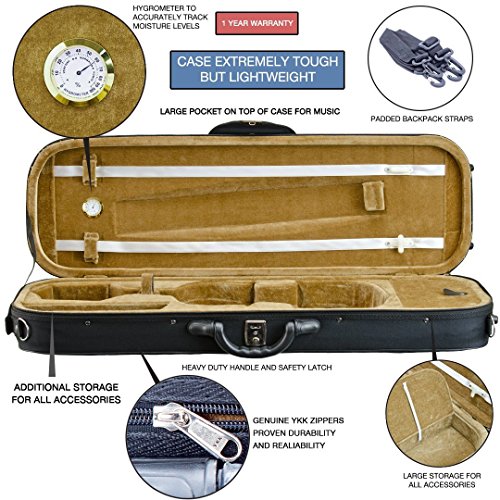 THE KENNEDY VIOLINS DIFFERENCE What makes Kennedy Violins string instruments the best on the market? We purchase each violin directly from the maker - a rare business practice that lowers our cost so we can pass the savings to you. Each violin is completely assembled and setup in our Vancouver, Washington shop. We guarantee that the quality and sound of your violin will be far superior to any other instrument in its price point. The Kennedy Violins Difference has garnered the highest ratings on Amazon for any string instrument retailer! VIOLIN FEATURES ? Perfect for the rock star in you! ? Solid-carved maple with 100% ebony fittings ? Piezo ceramic pickup ? Standard 3.5mm headphone jack ? 9-volt battery included ? Installed D'Addario Prelude Strings ? Control sliders for tone and volume ? High-grade maple bridge ? Tailpiece with four fine tuners GIULIANI BOW FEATURES ? Strong, responsive, high-grade Brazilwood ? Durable, real Mongolian horse hair for a smooth, full tone ? Metal-mounted, solid ebony frog ? Genuine mother-of-pearl accents INCLUDED ACCESSORIES ? One-year warranty on all accessories ? Full-suspension Bunnel Violin Case with straps and accessory compartments ? Powerful, compact mini amp for playing on the go! ? Over-ear headphones for at-home practice ? 1/4-inch patch chord ? Kennedy Violins rosin ? Polishing cloth 0 |