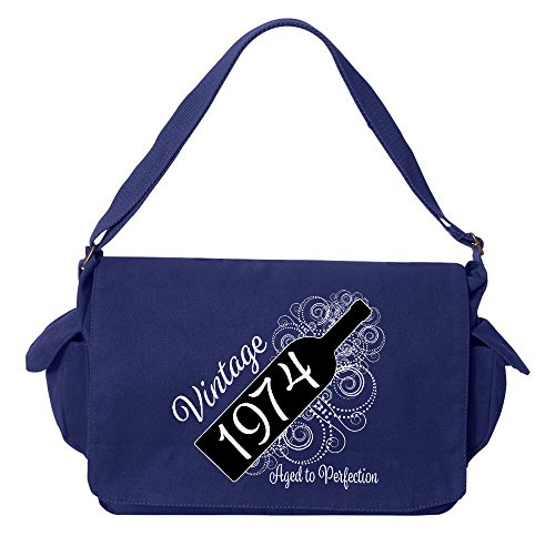 Studio : Tenacitee Publisher : Tenacitee Binding : Personal Computers Product Description Born in 1974 - Aged Like a Fine Wine Brushed Canvas Messenger Bag by Tenacitee. Express yourself! No boring bags here, this messenger bag is custom printed in our Oklahoma shop just for you. Made of 12oz 100% soft brushed cotton canvas this bag is perfect for telling the world what you think while you're out and about town. We use the latest Direct to Garment printing technology for a vibrant and soft print with less wasted ink. The bag is machine washable, has several inside zippered pockets, an interior key leash hook, and a 2" wide adjustable shoulder strap. The bag measures approximately 16"x11.5"x4.75". 0