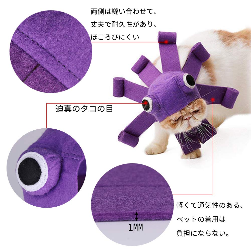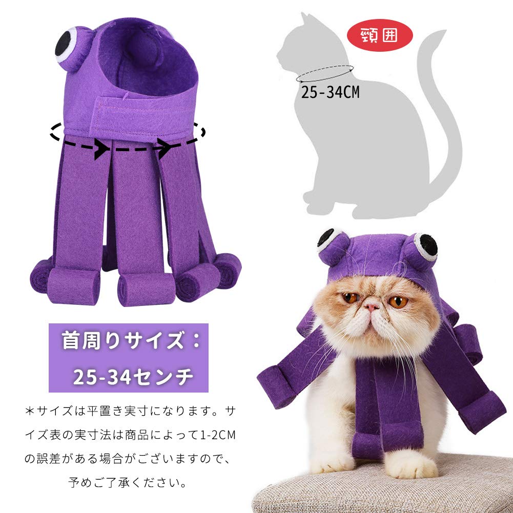 サイズ: パープルのタコ✿ かわいい8爪のタコの造型 ! ★かわいいパープルタコにゃんに大変身!毎日のペットドレッシングの最初の選択です。✿ 万聖節、記念日、イベントなど、面白い記念写真道具としてもおすすめ!✿ サイズ:首周り:25-34センチ、重さ:56g。* 購入前に猫の首周りを測定してください。