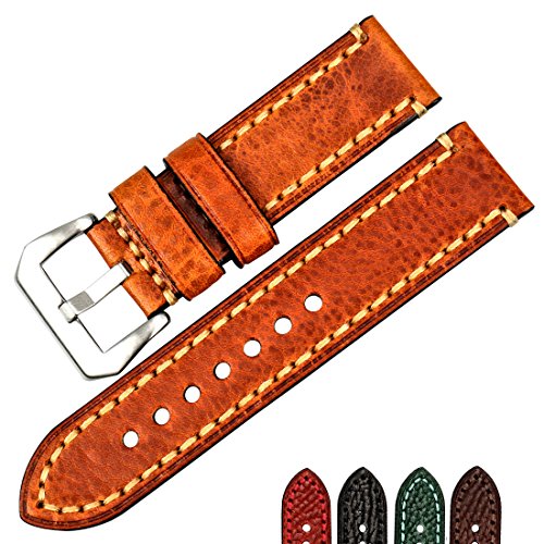 -. Feature : Premium Quality: Italy imported Leather & Vintage Greasedleather,oil wax skin / leather watch strap & 316 stainless steel buckle with antique and nostalgic look. Comfortable & breathable texturePremium Quality: Italy imported Leather & Vintage Greasedleather,oil wax skin / leather watch strap & 316 stainless steel buckle with antique and nostalgic look. Comfortable & breathable texture / Classic Design: This leather watch bands with a decent look fits well for both business and casual occasions, It is never out of fashion / Adjustable Length: One size fits most wrists. 7 closely strap holes. Compatible with famous & traditional & smart watches that uses 22mm, 24mm or 26mm spring bars / Delicate Craftsmanship -- The watch replacement band is made of 3 layers include surface leather, thickening layer and bottom layer; Leight weight and durable for use / Watch Leather Straps from MAIKES are made with meticulous craftsmen. We focus on every details to serve you