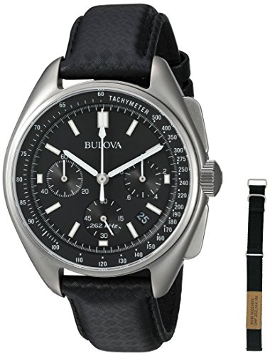 -. Feature : Replica of astronaut Dave Scott's personal Bulova chronograph worn during the Apollo 15 moon landing / Six hand calendar chronograph, stainless steel screw-back case in silver-tone finish and black dial, sapphire glass. .Powered by Bulova's proP.R.Ietary, high-performance UHF quartz movement / Quartz Movement / Case Diameter: 45mm / Water Resistant To 30m (100ft): In General, Withstands Splashes or Brief Immersion In Water, but not Suitable for Swimming or Bathing