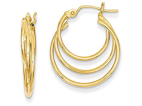 The amazing 14k Triple Hoop Earrings, crafted in 14 kt Yellow Gold . This style measures 4.00 mm wide, 17.00 mm long. GIFT CARD OPTION WILL NOT BE AVAILABLE FOR THIS ITEM!