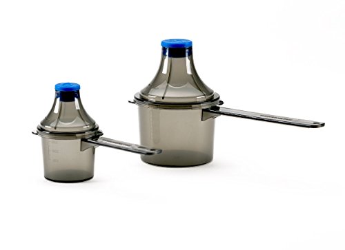 EASY SCOOP AND FUNNEL DESIGN. Measure goods in cc/ml and TBSP.
