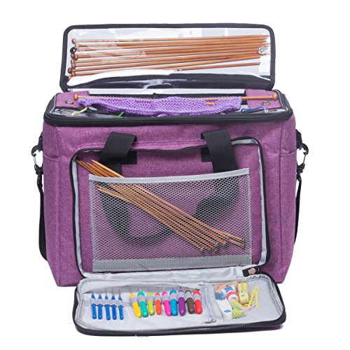 - CONVENIENT TO CARRY: The velcro handle and removable adjustable shoulder strap give you option to carry it by hand or on the arm, wear it over the shoulder or across the body like a messenger. A must-have gift for avid knitter, crochet beginner, knitting enthusiasts.