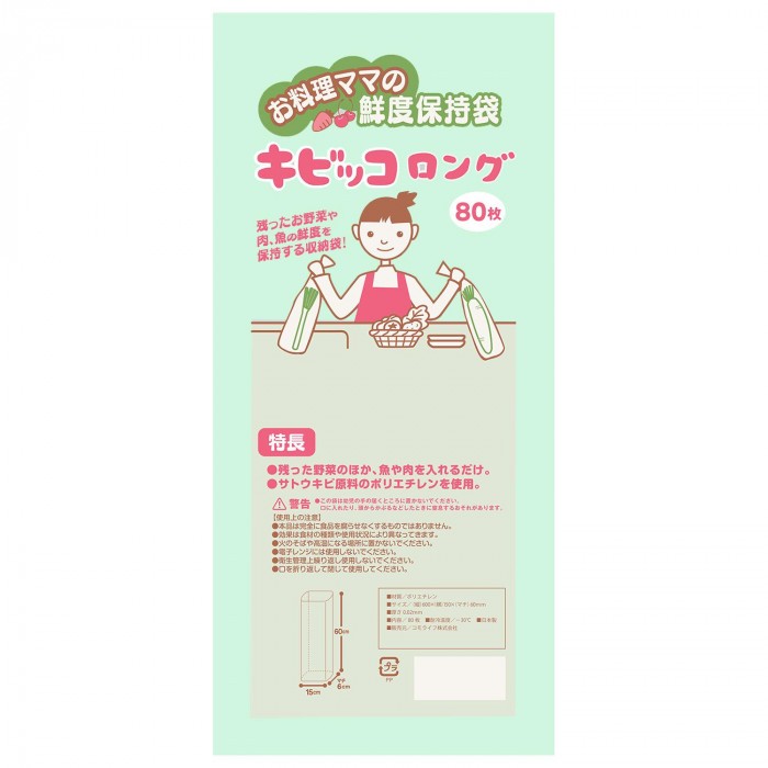 特殊フィルムで食材の腐敗を抑制する鮮度保持袋(ネギ、ニラ、ゴボウ、大根など長い野菜用) 内容量 80枚 サイズ 約縦600×横150×マチ60mm、厚さ0.02mm 重量 約4.6g 素材・材質 ポリエチレン 製造国 日本 特殊フィルムで食材の腐敗を抑制する鮮度保持袋(ネギ、ニラ、ゴボウ、大根など長い野菜用) 鮮度保持/野菜/保存袋/ロング/冷蔵庫/特殊フィルム/大根/ニラ/ネギ/ゴボウ