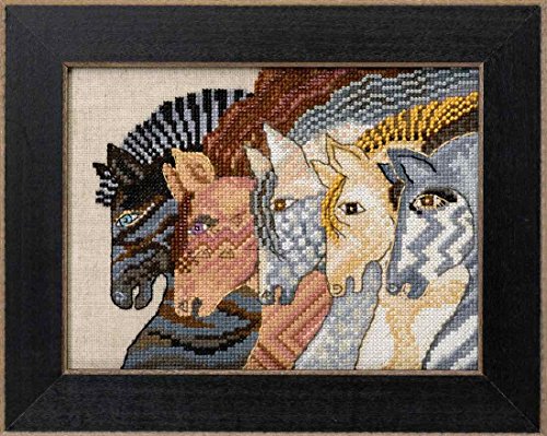 Mill Hill 2017 Laurel Burch Horses Collection: Mediterranean Mares, Moroccan Mares, Embracing Horses, Riviera Horses, Wild Horses. Each available in Linen or Aida fabric