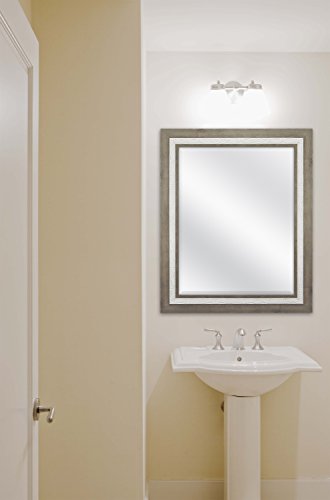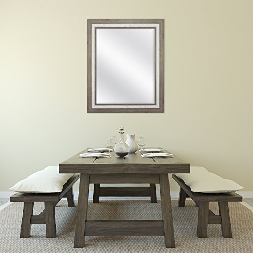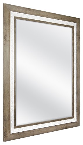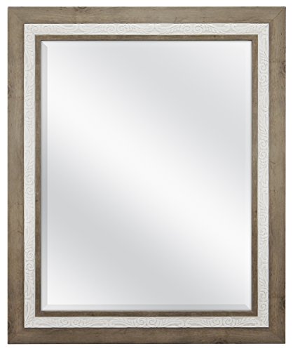 MCS 22x28 Inch Rustic Wall Mirror with Embossed Filigree Accent, 28.5x34.5 Inch Overall Size, Rustic Woodgrain (83044)