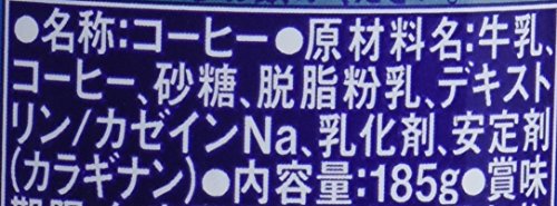 原材料:牛乳、コーヒー、砂糖、脱脂粉乳、デキストリン/カゼインNa、乳化剤、安定剤(カラギナン)