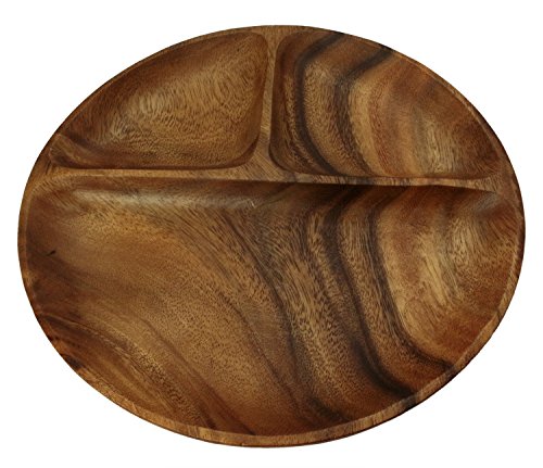 -. Title : 木製食器 丸皿 仕切り付き プレート M アカシア 約φ25×2.5cm